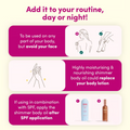 Μετά την χρήση, το δέρμα είναι μεταξένιο, ενυδατωμένο, απαλό και λαμπερό.