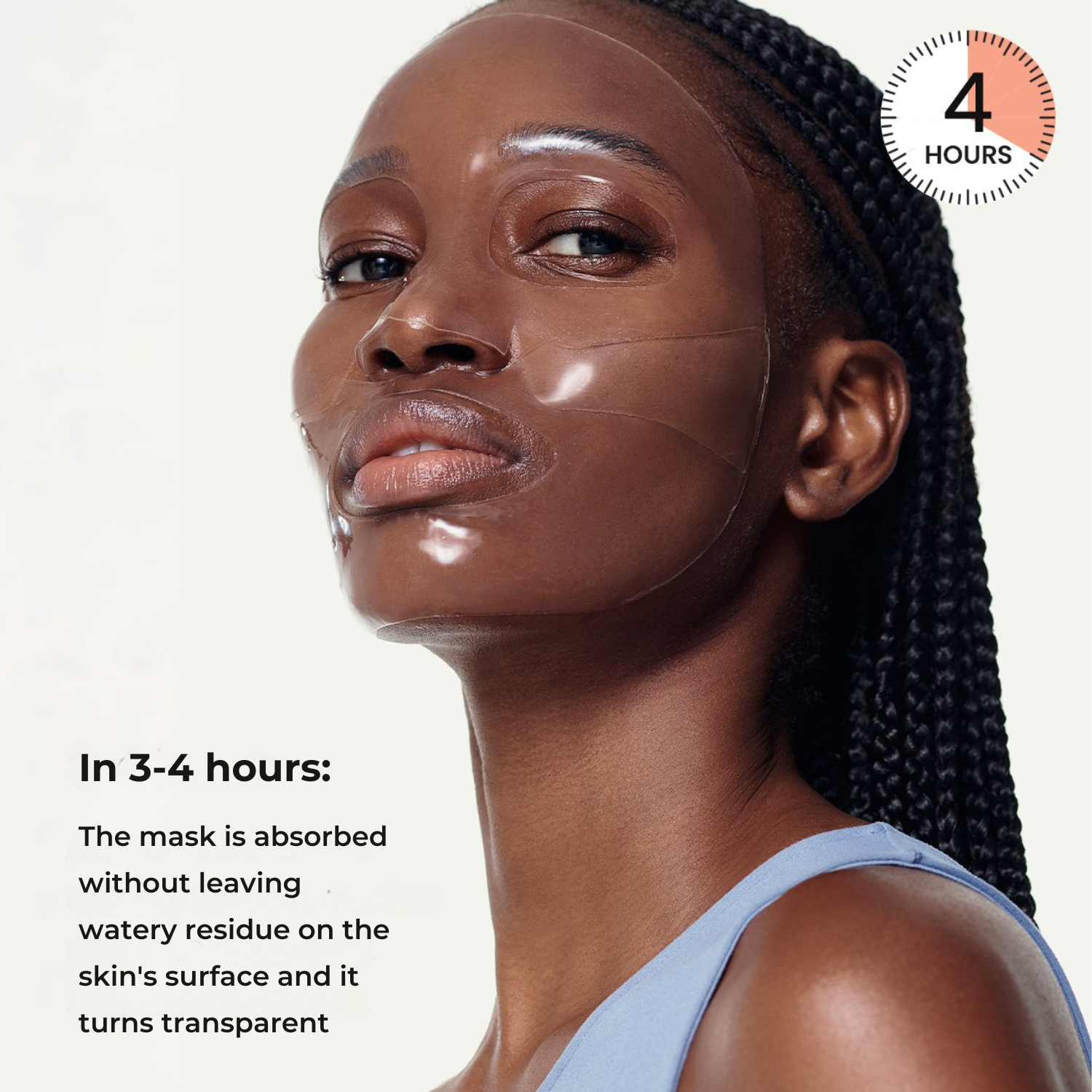 Becomes transparent when applied for more than 3 hours, delivering active ingredients into the skin.
