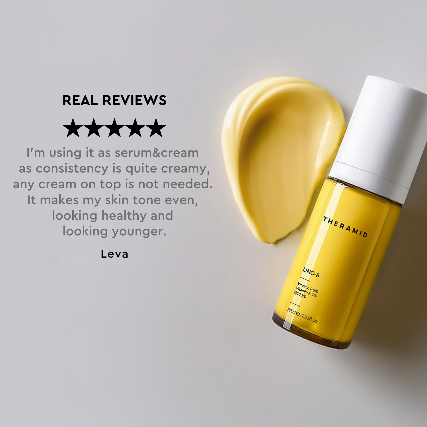 Είσαι έτοιιμος/η να ανακαλύψεις το μυστικό για λαμπερό και νεανικό δέρμα; Ο ορός LINO-8 Treatment της εταιρείας THERAMID by Niche Beauty Lab είναι ένας ορός πλούσιος σε βιταμίνες. Περιέχει ένα πανίσχυρο , αντιοξειδωτικό μείγμα βιταμινών F, K, και συνένζουμου Q10. Αναβάθμισε την ρουτίνα σου και ανακάλυψε την φυσική λάμψη της επιδερμίδας σου.
