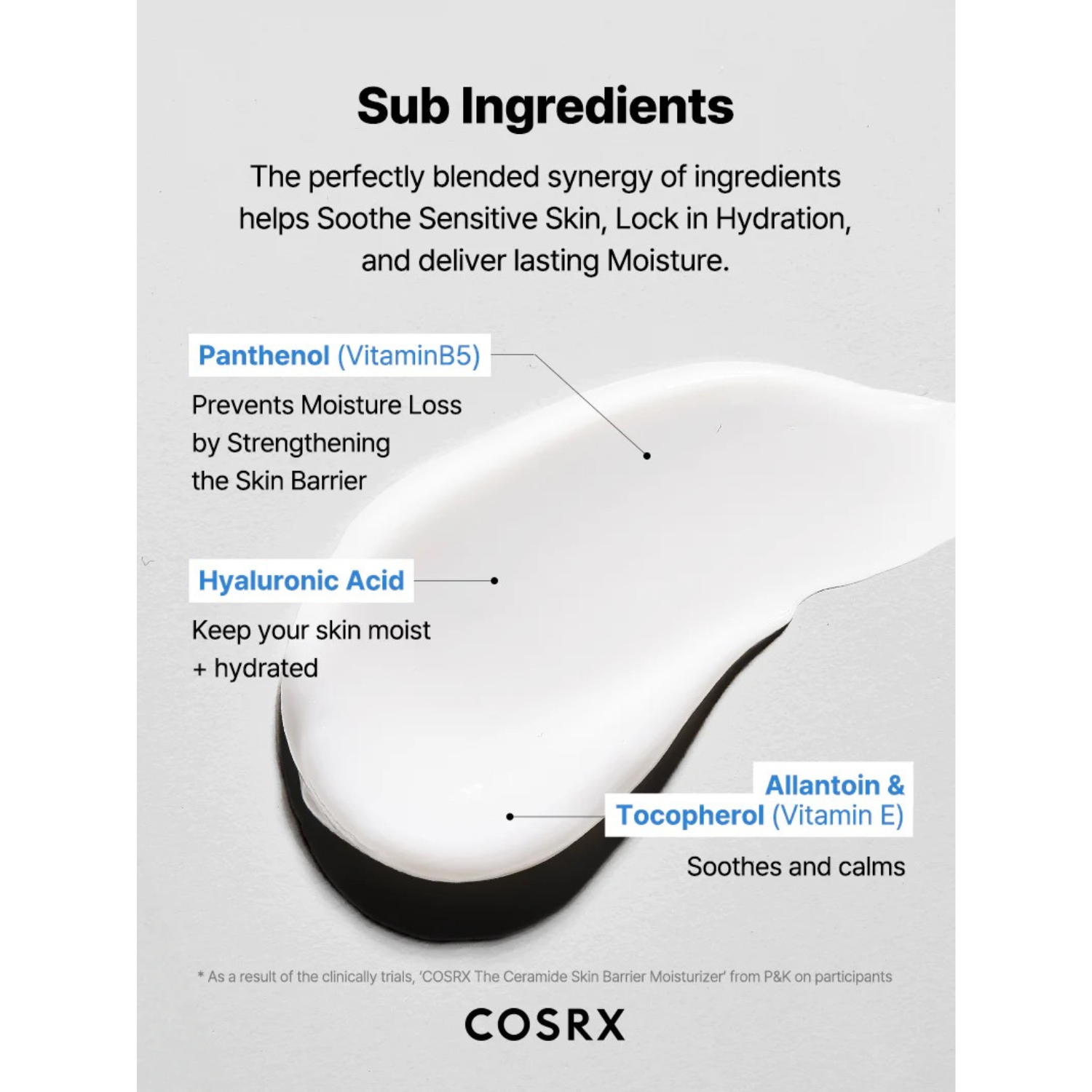 - Enriched with Panthenol, Hyaluronic Acid, Allatoin, and Tocopherol to soothe and hydrate skin.